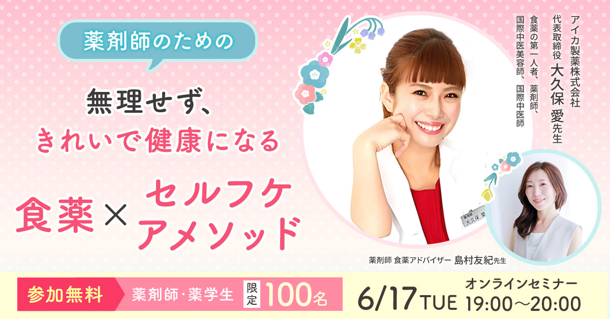 終了しました)【6/17開催】薬剤師のための「無理せず、きれいで健康になる 食薬×セルフケアメソッド」オンラインセミナー