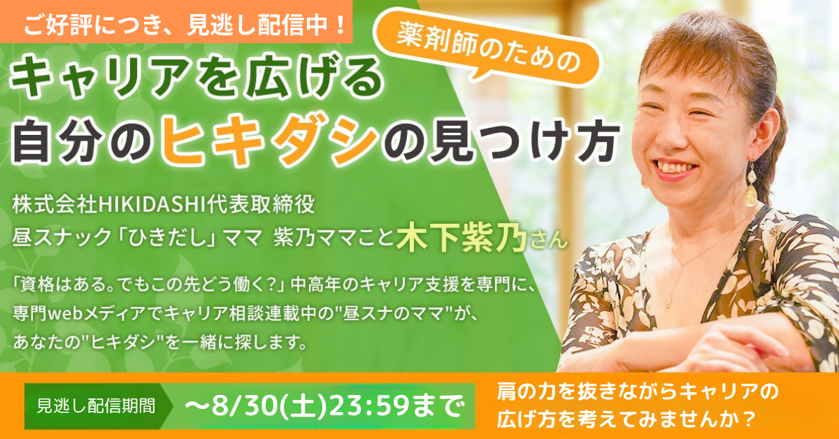 終了しました)【見逃し配信中~8/30まで】薬剤師のためのキャリアを広げる 自分のヒキダシの見つけ方