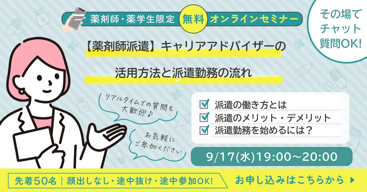 終了しました)【9/17開催】[薬剤師派遣]キャリアアドバイザーの活用方法と派遣勤務の流れ